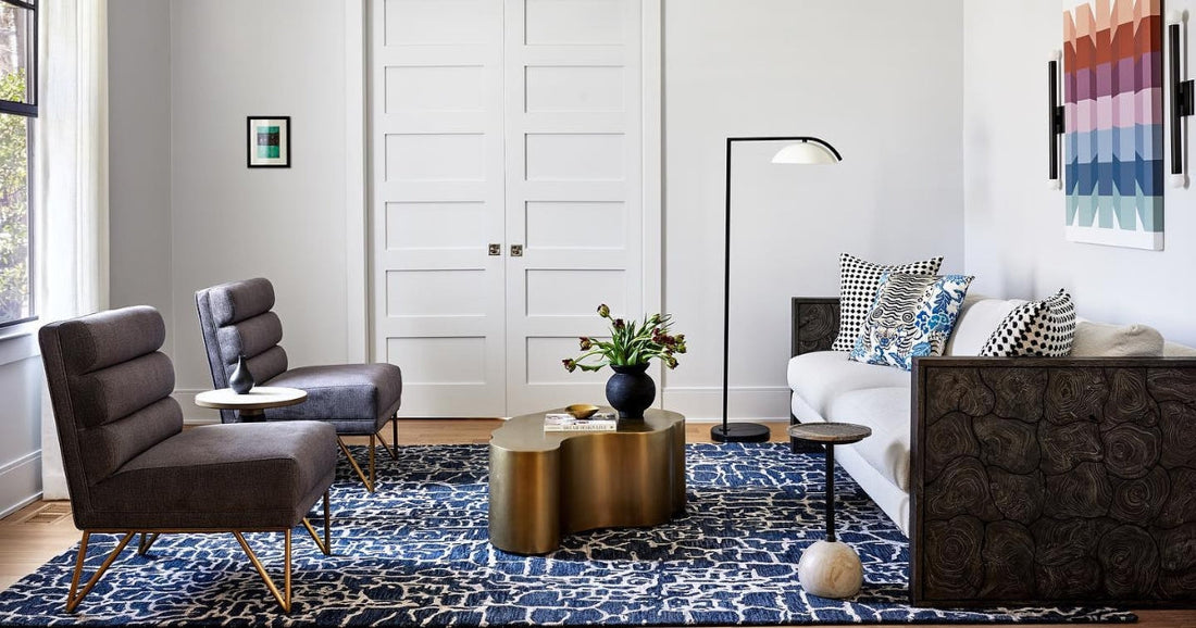 Let’s start with the basics. Size and shape matter! Got a large, open space? Go for a big, bold vibrant rug that makes a statement and ties your furniture together.