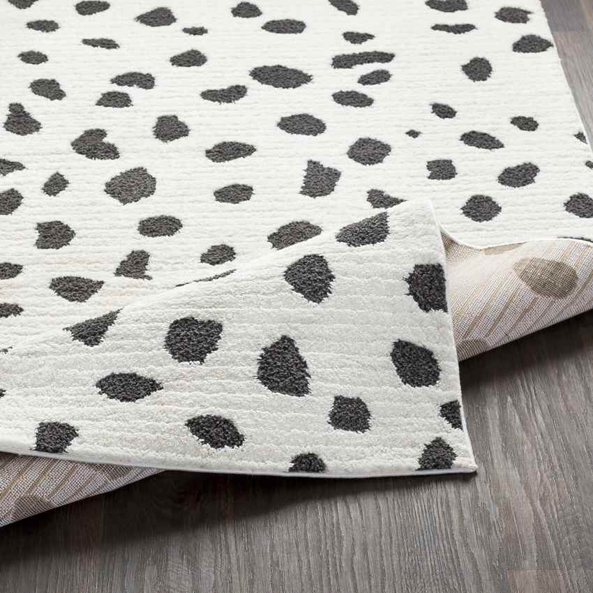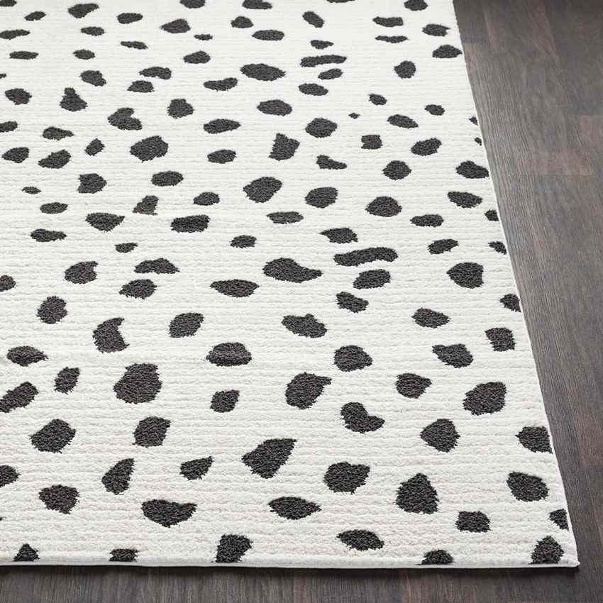 Terrific Aadhya Global Black Area Rug is a funky design of black blots on a white background. The combination of black and white on a piece is certainly a shoutout to modern and fun styles. This piece will be your new gateway to trendy styling and home decoration.Pet Friendly