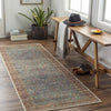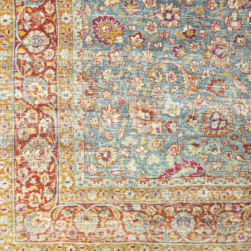 The Agridaki Traditional Sage Washable Area Rug's design draws inspiration from classic rug artistry, featuring intricate patterns and a harmonious blend of colors that evoke a sense of timeless elegance. The central motifs, rendered in a captivating combination of deep teal, orange, and yellow tones, are surrounded by a tapestry of complementary shades, creating a visual feast that complements a variety of interior styles. From traditional to contemporary, this rug adds a touch of sophistication and warmth to any space. Its versatile color palette allows it to seamlessly integrate with existing dcor, while its intricate patterns provide a focal point that enhances the overall aesthetic.