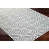 Introduce a fresh and sophisticated touch to your home with the Antwon Modern Light Gray/Ivory Area Rug. This striking piece is a perfect blend of modern design and functional durability, meticulously machine-woven in Turkey from 100% polyester. Its captivating geometric pattern, featuring a beautiful interplay of light gray, ivory, and medium gray tones, adds a dynamic and stylish element to any room. With its practical no-pile construction and an ultra-low profile of 0.00 inches, this rug is engineered to handle high-traffic areas with grace, providing a sleek and seamless look that won't obstruct doors or furniture. This stunning rug is not only a visual delight but also a smart and long-lasting addition to your home decor.