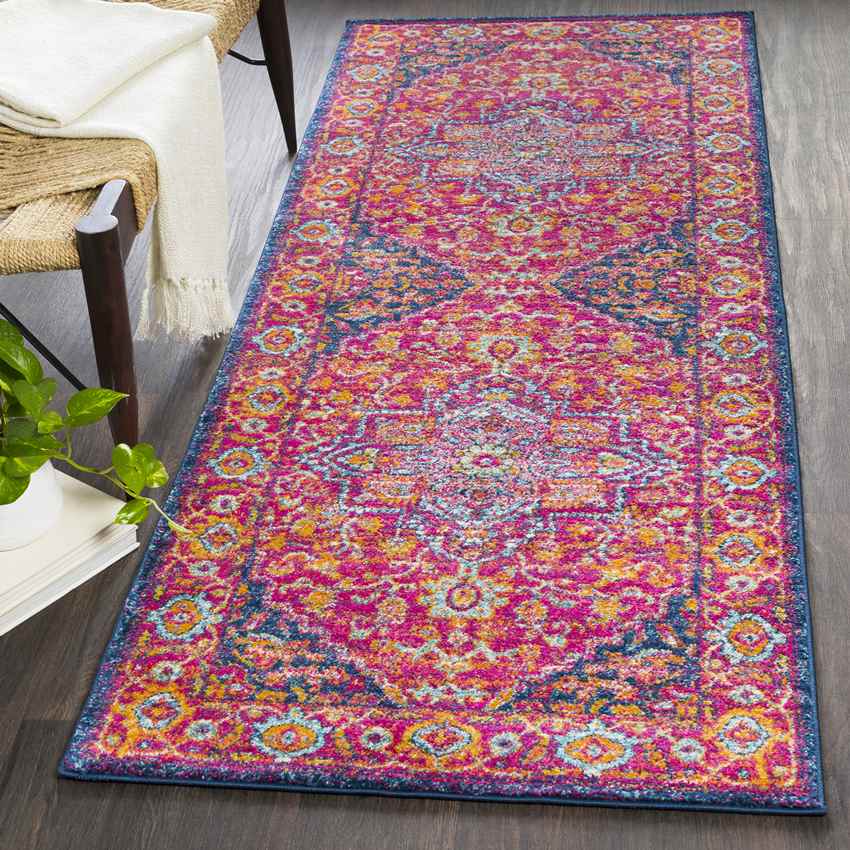 A dazzling, vibrant and Eastern inspired design carrier Aquaforte Updated Traditional Garnet Area Rug will add an eclectic look to your personal spaces. This brilliant duo of blues, oranges and pinks is a skillful artistry. Step out of dullness with a unique piece for a low price.