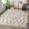 The Brigitte Global Cream Charcoal Area Rug beautifully blends luxurious comfort with a globally inspired design. The contrasting charcoal pattern against a cream backdrop creates a visually striking and textured look, characteristic of Moroccan aesthetics. The deep 1.26-inch plush pile offers an unparalleled level of softness underfoot, making any space feel more inviting and cozy. The addition of fringe detailing enhances its global charm, making it a stylish focal point in your home. Enhance the plush feel and prevent slipping by using a rug pad.