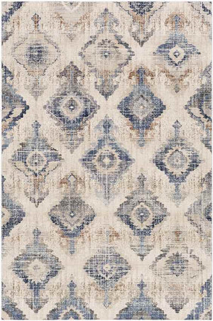 The print of the Burnley Traditional Taupe Area Rug reminds one of the details of beautiful peacock feathers. The concentric diamonds form this stunning pattern in a muted color palette of taupe, white, charcoal, navy, denim, dark brown, and medium gray. The pattern also reminds one of tribal prints, especially Ikat prints, which usually have a tie-dyed look to them. This combination of the colors and the pattern is certainly a very interesting and unique way to convey the Bohemian interior design style.
