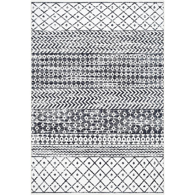 Divine Bohemian/Global Off-White/Black Washable Area Rug