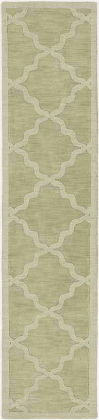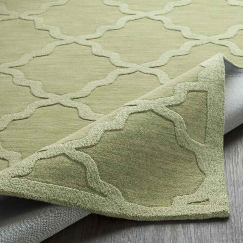 The Ermont Modern Grass Green Area Rug brings a touch of vintage charm and sophisticated elegance to any room. Hand loomed in India from 100% wool, this rug features a beautiful olive green and sage color palette that creates a serene and timeless atmosphere in your home. The medium pile of 0.39 inches offers a soft and plush feel underfoot, making it perfect for living rooms, bedrooms, or hallways where both style and comfort are essential.