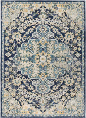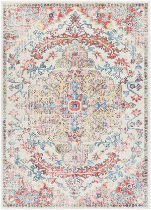Elevate your decor effortlessly with the Gimel Traditional Sky Blue/Garnet Area Rug.