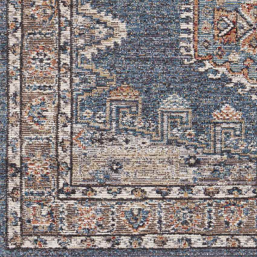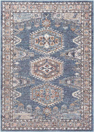 Infuse your home with timeless charm and practicality with the Grave Traditional Navy Area Rug. This Persian-inspired masterpiece boasts an intricate pattern in shades of navy, ink blue, rust, light beige, and gray, creating a rich, authentic design that adds warmth and character to any space. Perfectly blending vintage aesthetics with modern functionality, this rug is an exceptional choice for those who seek both style and durability.