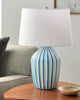 Illuminate your space with the captivating charm of the Hebah accent table lamp. Perfectly blending an industrial rustic vibe, this lamp features a striking ceramic body that exudes both strength and style. Topped with a refined linen shade and complemented by a durable polyester interior, it casts a warm, inviting glow that's ideal for any cozy corner or bedside table. The iron finial adds an extra touch of rugged elegance, making this 22-inch tall lamp not just a lighting solution but a statement piece. Easy to maintain with just a quick wipe from a dry cloth, it's designed for those who appreciate both aesthetics and practicality in their home decor.