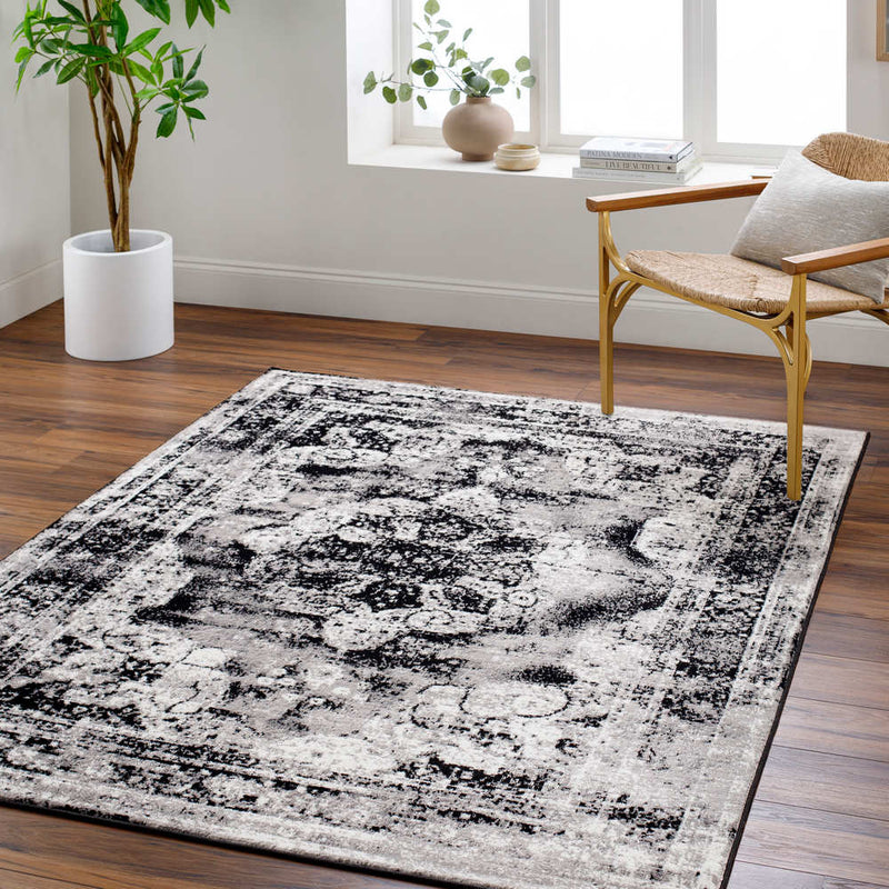 End your hopeless days of searching for unique home decoration items and opt for Hubert Collection, this artistry and lustrous assortment of breathtaking design can enhance the aura in your home. A desirable area rug that lends joy while achieving that long fancied calmness. Embrace this creative style in your private spaces.Easy Clean