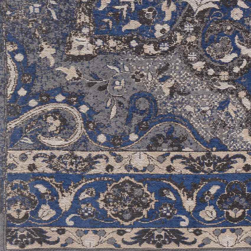 Introduce timeless sophistication to your home with the Kamsack Traditional Navy Area Rug, a masterpiece of intricate design and lasting durability. Featuring a rich color palette of navy, charcoal, medium gray, light gray, and taupe, this rug brings a sense of heritage and refined charm to any space. Handwoven in India from a premium blend of 75% chenille-polyester and 25% cotton, this no-pile rug offers a sleek finish while ensuring resilience against daily wear and tear.