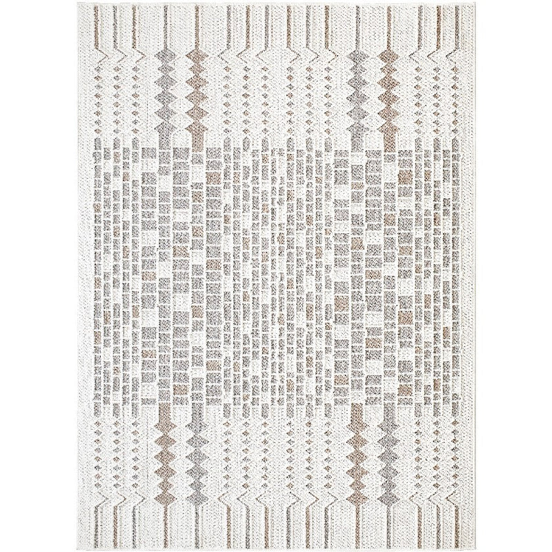 Elevate your interiors with the refined elegance of the Kristyn Modern Ivory Area Rug. Designed to blend seamlessly with both contemporary and classic spaces, this sleek and sophisticated rug showcases a tranquil palette of ivory, beige, and light grayâ€â€creating a clean, calming foundation for your home décor. Expertly machine-woven in Turkey, it features a no-pile polyester construction that is both durable and soft to the touch. Whether you're looking to update your living room, office, or entryway, this stain-resistant, kid and pet-friendly area rug offers the perfect mix of performance and understated charm.