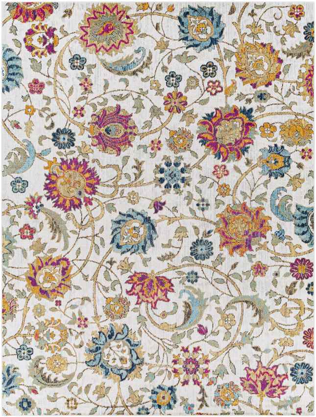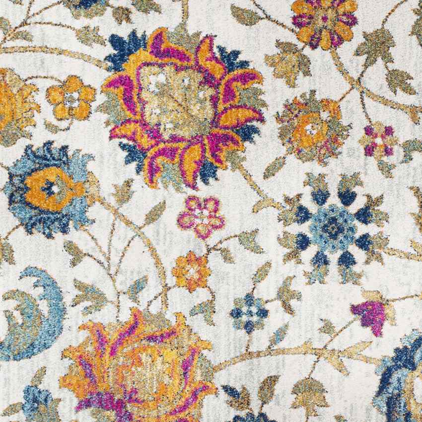 Add a splash of vibrant charm to your home with the Kuikhorne Modern Saffron Area Rug, a stunning blend of bold colors and intricate floral designs. This rug showcases an array of beautiful flower motifs in saffron, teal, burgundy, navy, and medium gray tones, set against a light beige backdrop for an elegant yet lively look. Perfect for enhancing your living room, bedroom, or entryway, this rug serves as both a decorative centerpiece and a functional floor covering. Made from 100% polypropylene, this machine-woven rug is designed to be kid- and pet-friendly, stain-resistant, and durable enough for high-traffic areas. With its soft medium pile, the Kuikhorne rug balances comfort and durability, making it a must-have for modern homes.