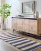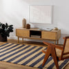 The Larraine Modern Dark Blue Area Rug showcases a captivating interplay of deep navy and warm beige. This sophisticated color combination brings a sense of both grounding strength and natural warmth to your space. The deep navy provides a rich, anchoring element, while the warm beige tones add a touch of rustic elegance. Jute's natural texture enhances the visual appeal, creating a rug that complements a variety of decor styles, from coastal chic to modern farmhouse.