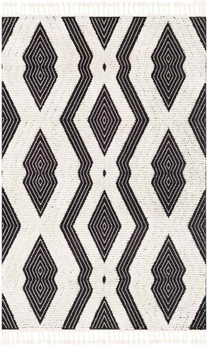 Infuse your home with modern sophistication and Scandinavian charm with the Le Moule Global Black/Ivory Area Rug. Designed to captivate, this rug is a harmonious blend of geometric precision and boho-inspired flair, making it a bold yet versatile piece that elevates any rooms aesthetic. Its dynamic black and ivory palette brings contrast and character to your space, while the high pile texture adds unmatched softness underfoot.