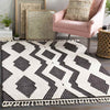 Infuse your home with modern sophistication and Scandinavian charm with the Le Moule Global Black/Ivory Area Rug. Designed to captivate, this rug is a harmonious blend of geometric precision and boho-inspired flair, making it a bold yet versatile piece that elevates any rooms aesthetic. Its dynamic black and ivory palette brings contrast and character to your space, while the high pile texture adds unmatched softness underfoot.