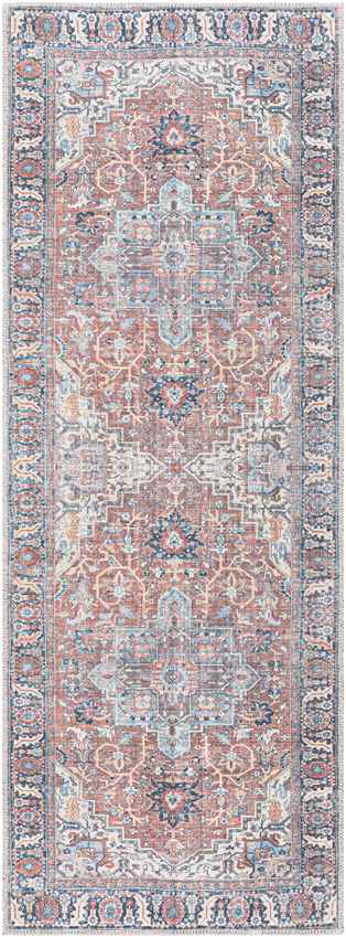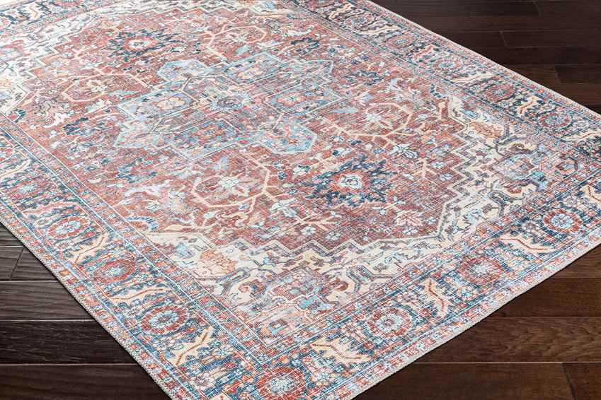 Shop now and bring home the beauty of the Lorin Traditional Rust Washable Area Rug - a perfect mix of charm, comfort, and effortless care!