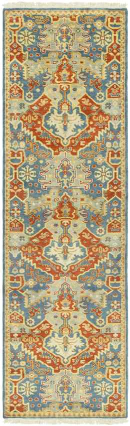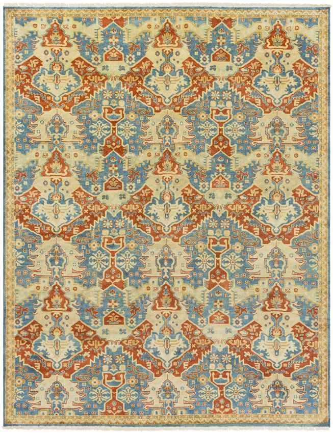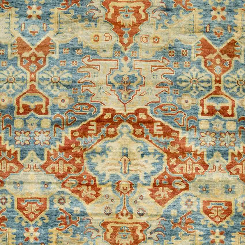 Transform your home with the tranquil beauty and natural luxury of the Luton Traditional Sky Blue Area Rug. This hand-knotted masterpiece, meticulously crafted in India from 100% New Zealand wool, features a serene palette of blue, rust, sage, mustard, and wheat, creating a harmonious blend of traditional hues. The low 0.24-inch pile offers a refined texture and enduring durability, making it an ideal choice for high-traffic areas. Designed for the demands of modern living, the Luton rug is stain-resistant and kid and pet-friendly, ensuring both beauty and practicality. It's the perfect fusion of artisanal craftsmanship and everyday functionality, bringing a touch of calming elegance and natural comfort to your home.