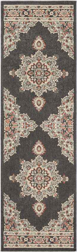 Lyla Traditional Black Area Rug is an elegant homage to classic pieces of Ancient Egypt. Traditional yet timeless, its bold palette accompanied by the calming presence of neutral colors remarks sophistication and solemnity. Its oriental pattern brings in an elaborate feel to your home decor with a classic elegance. Machine woven in Egypt with 100% olefin, it is also a perfect choice for homes with kids and pets.