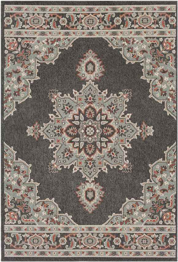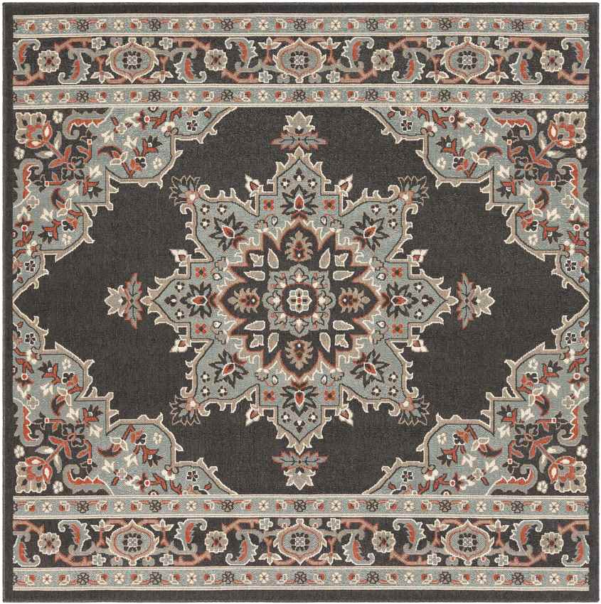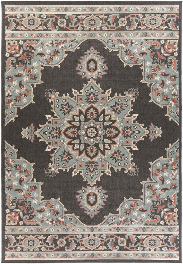 Lyla Traditional Black Area Rug is an elegant homage to classic pieces of Ancient Egypt. Traditional yet timeless, its bold palette accompanied by the calming presence of neutral colors remarks sophistication and solemnity. Its oriental pattern brings in an elaborate feel to your home decor with a classic elegance. Machine woven in Egypt with 100% olefin, it is also a perfect choice for homes with kids and pets.Outdoor Safe