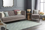 The pale blue, sage, and dusty sage tones of the Menton Modern Ice Blue Area Rug bring a sense of peace and tranquility to any room. This rug is the perfect addition to any modern, minimalist, or transitional dcor style. Whether placed in a cozy living room, a restful bedroom, or a welcoming entryway, the rugs neutral yet fresh palette will complement a variety of color schemes and furniture pieces.