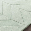 The Menton Modern Ice Blue Area Rug brings an element of tranquility and style to any room with its soothing pale blue, sage, and dusty sage hues. Hand woven in India from 100% wool, this rug features a medium-pile construction of 0.40 inches, providing a plush feel underfoot while maintaining a sleek look ideal for high-traffic areas. The mint color accents add an airy touch to your dcor, making it a perfect addition to your living room, bedroom, or hallway.