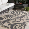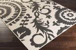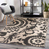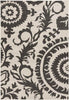 Elevate your home decor with the Nancy Cottage Cream Area Rug, a stunning fusion of timeless charm and modern functionality. Featuring an intricate black floral pattern against a soft cream backdrop, this rug blends traditional aesthetics with contemporary practicality. Machine-woven in Egypt from 100% Olefin, this piece is built to withstand the test of time, making it a versatile choice for both indoor and outdoor spaces. Its sleek, no-pile design ensures a clean, sophisticated look, while its durable construction makes it perfect for high-traffic areas in your home or patio.