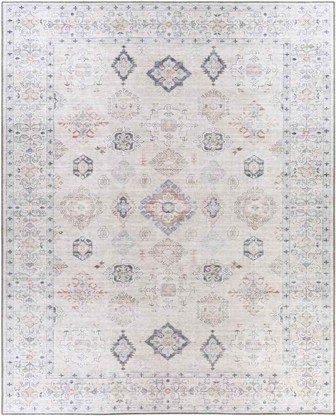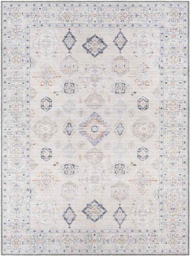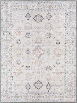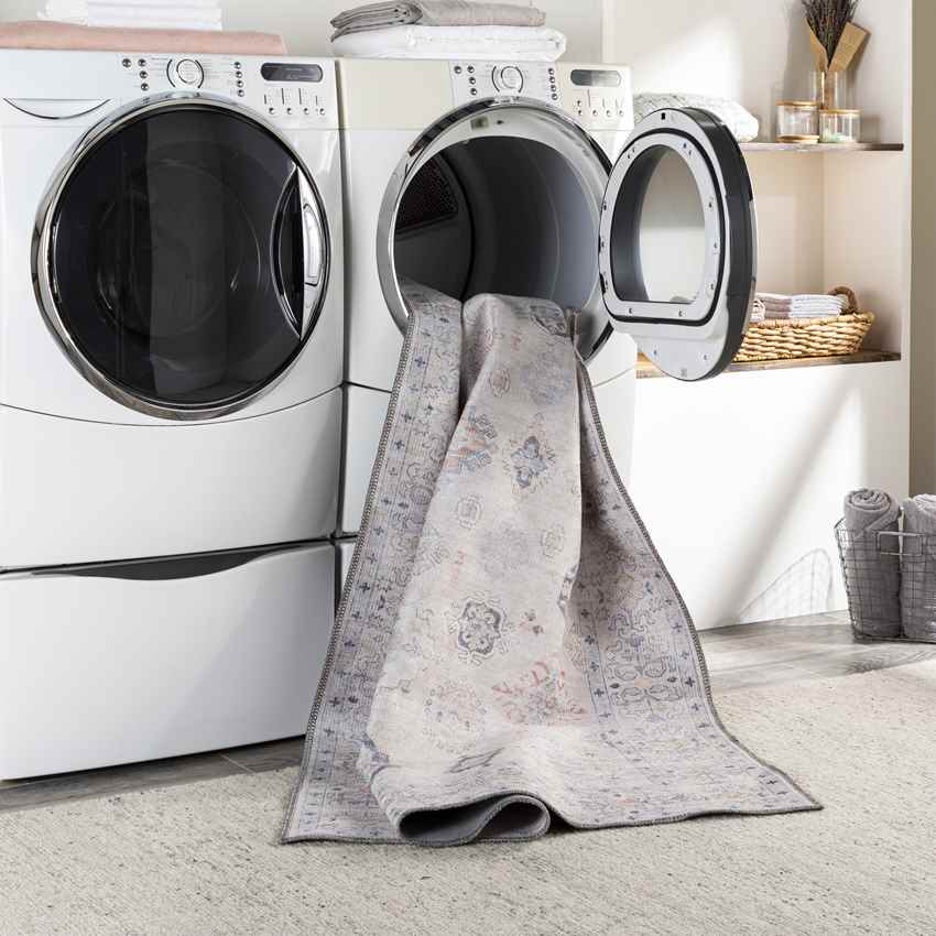 Inspiring and cool gray and blue shades on North Utica Traditional Beige Washable Area Rug are worth mentioning as they add a rustic yet modernized vibe to this element. With the warm harmony of gray and blues, this rug will look best with navy tone accessories or furniture. It is easy to clean and pet-friendly too.Machine Washable