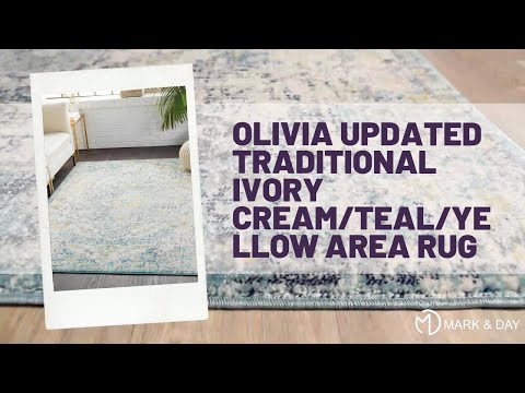 Olivia Traditional Ivory Cream/Teal/Yellow Area Rug