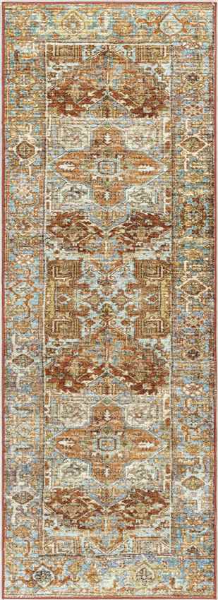 Bring warmth and elegance to your home with the Peoria Heights Traditional Burnt Orange Washable Area Rug.