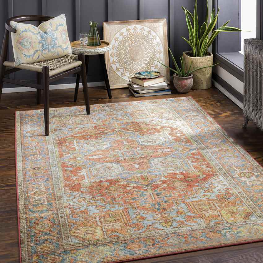 Peoria Heights Traditional Burnt Orange Washable Area Rug - Classic Charm with Modern Durability