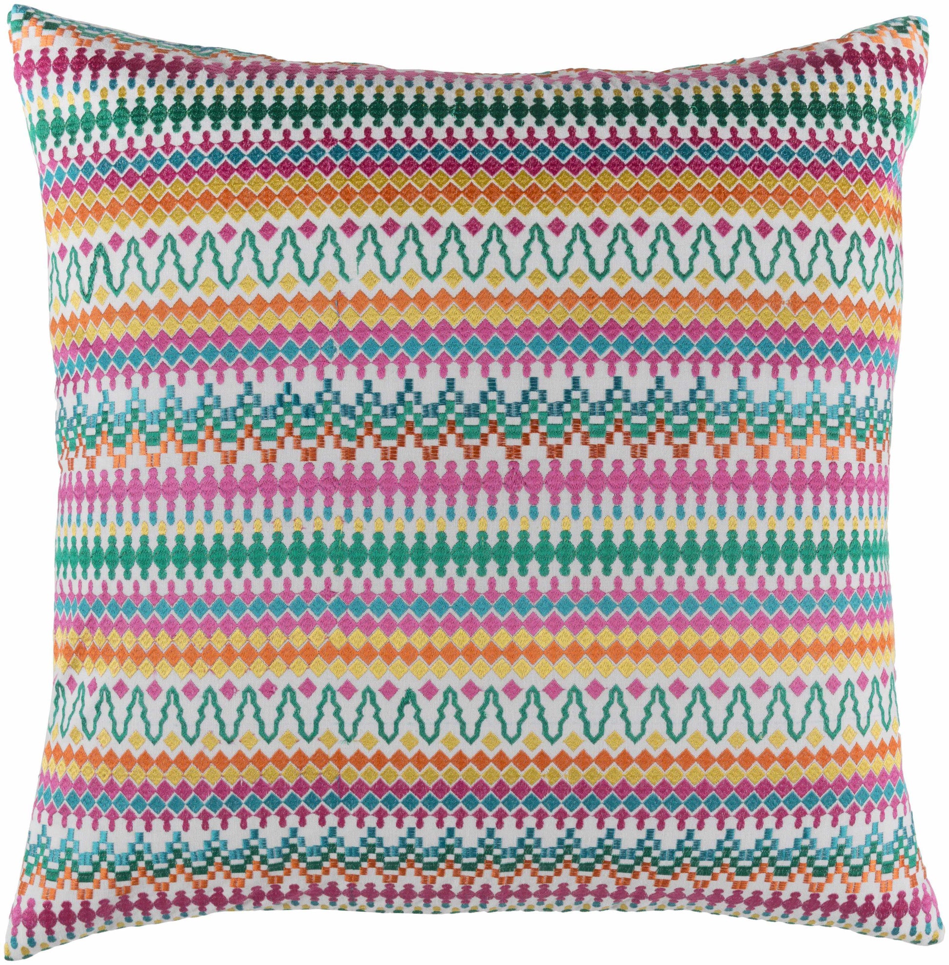Striking Embroidered Details: Features Bright Pink, Saffron, Emerald, Aqua, and White accents.