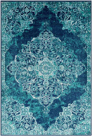 Sensational teal tone has taken the wheel on Radville Updated Traditional Teal Area Rug. This vibrant and unique area rug is a monochrome artwork that is mesmerizing to all eyes. Take brilliance home with this fine area rug.Easy Clean