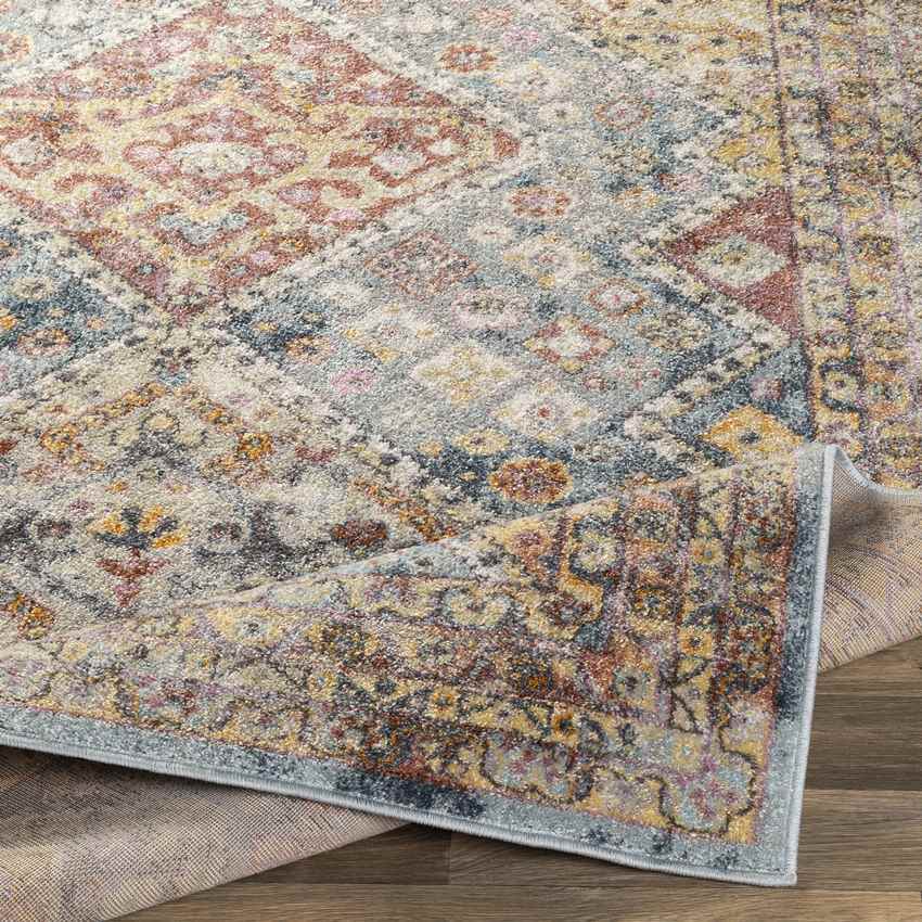 Ramsey Updated Traditional Denim Area Rug is a piece featuring soft earthy tones, incorporating a medieval inspired layout. Take a bold step and turn a new leaf in home design by opting for an oriental area rug to place in your home.Easy Clean