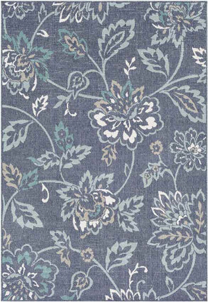 Elevate your homes style with the stunning Selma Cottage Aqua Area Rug, a delightful fusion of artistic floral designs and country cottage charm. This rug has an exquisite palette of pale blue, taupe, white, navy, and teal, creating an inviting and serene atmosphere in any space. Crafted from durable 100% Olefin and designed with a no-pile construction, it is perfect for both indoor and outdoor use. Whether you're enhancing your living room, bedroom, or patio, the Selma Cottage Aqua Area Rug adds a touch of elegance and practicality to your home.