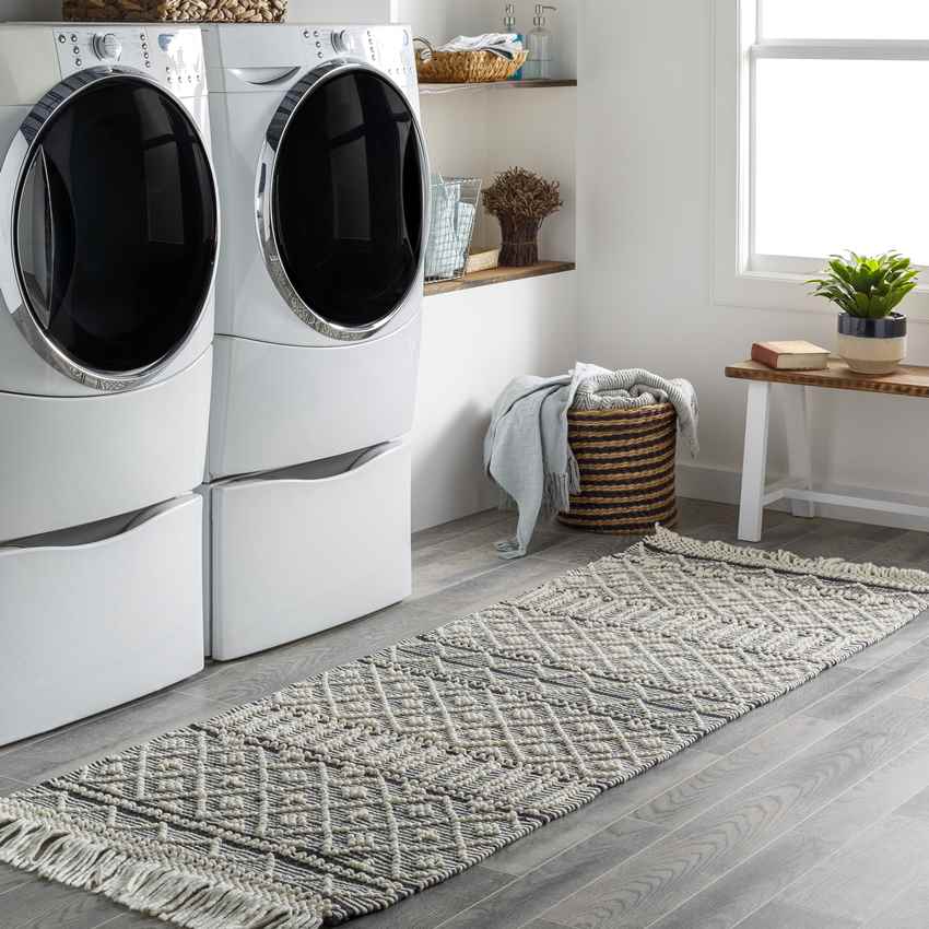 Continuing authentic motifs in a mesmerizing pattern is the Tours Cottage Charcoal Area Rug. Boho style pieces are usually too laid back or chaotic whereas this piece brings tranquility with a naive discipline and cleanness to itself.Hand Made