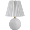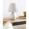 Add a touch of modern minimalism to your living space with the Travarus accent table lamp. This chic lamp features a sleek ceramic body coupled with a linen outer shade and an inner polystyrene lining that emits just the right amount of light for any setting. Standing at 12 inches tall, it's designed to fit perfectly on any side table, desk or nightstand. The clean lines and minimalist style create an understated elegance that can seamlessly blend into any decor style. Plus, maintaining this lamp is as simple as wiping it clean with a dry cloth?no need for harsh cleaners. Illuminate your space in style with the Travarus accent table lamp.