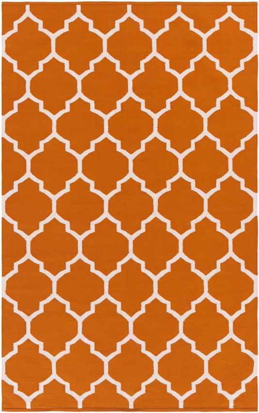 Infuse your home with a burst of radiant energy and timeless charm with the Zelhem Modern Bright Orange Area Rug. This exquisite piece masterfully blends the invigorating hue of bright orange with the sophisticated elegance of traditional patterns, creating a captivating focal point for any room. Hand-woven in India from 100% premium cotton, the Zelhem rug boasts a unique no-pile construction that offers both durability and a sleek, low-profile aesthetic. Its intricate design, featuring contrasting burnt orange and cream accents, evokes the grandeur of medieval palace adornments, adding a touch of historical artistry to your modern living space. More than just a visually stunning addition, this rug is designed for everyday life, offering exceptional stain resistance and a kid-and-pet-friendly nature, ensuring lasting beauty and practicality.